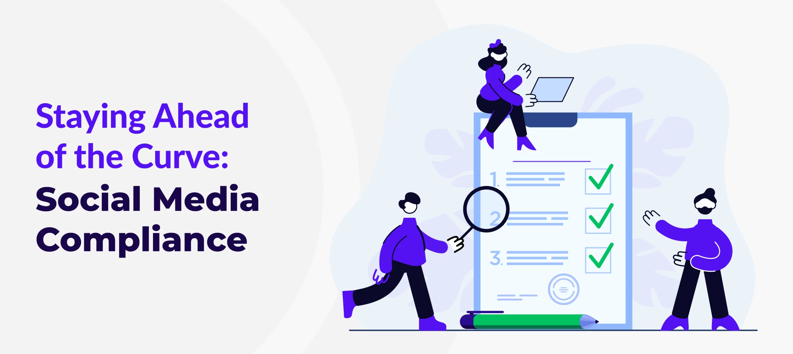 Social media compliance is the process of ensuring an organization’s social media platforms adhere to a set of regulations, guidelines, and best practices set by regulatory bodies, as well as internal policies set by individual organizations.